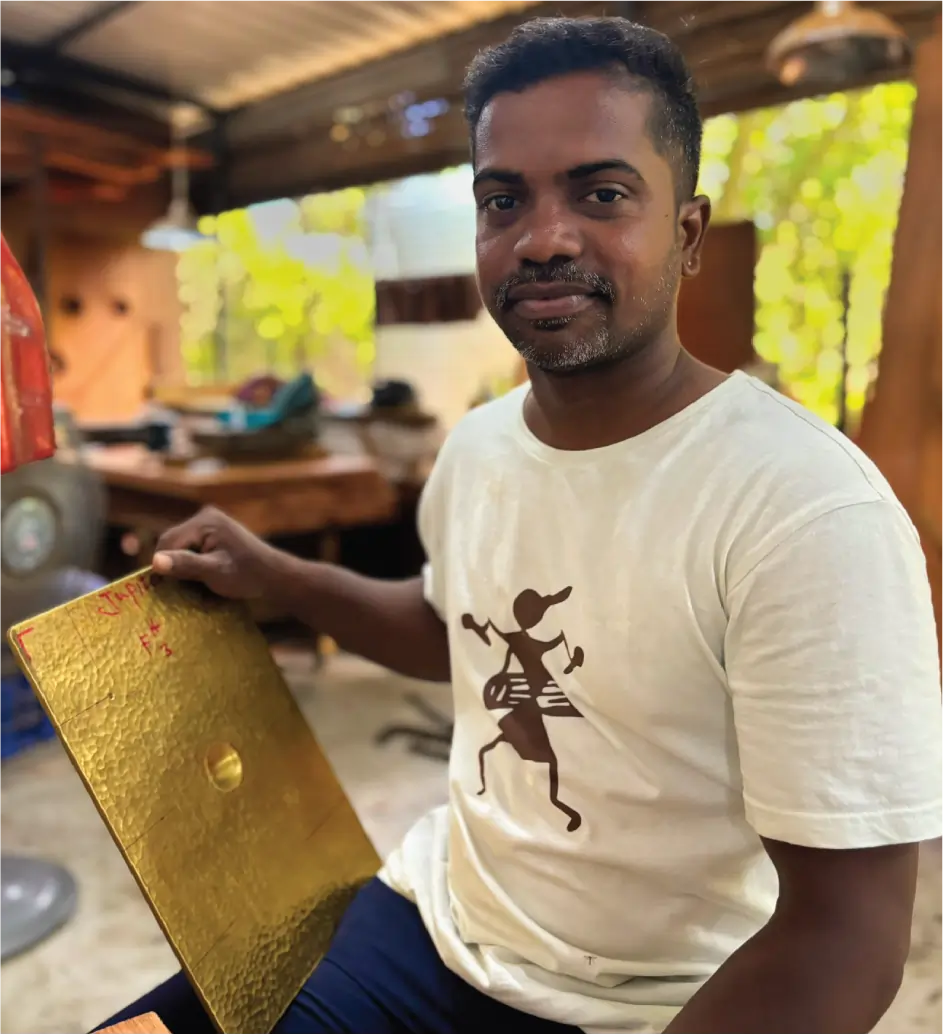 The SVARAM Plate Bells are a unique series of finely handcrafted instruments made from solid brass, offering pure, resonant tones that speak directly to the body and spirit. Tuned in Just Intonation by Dutch craftsman and sound researcher Jan van den Dikkenberg supported by Anandavel and team, these bells resonate with natural harmonic ratios, making them exceptionally suitable for sound healing, meditative practices, and therapeutic work.